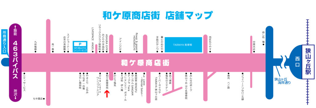 2025年10月8日2025年10月10日和ケ原接骨院 店 舗 名和ケ原接骨院T E L04-2946-8844住 所所沢市和ケ原1丁目121-27営 業 時 間(午前) 8:30~12:00.(午後) 15:00~19:00定 休 日日曜日・祝祭日 店主からのメッセージ 痛みの原因をみつけて1人1人丁寧に治療していきます。初めての方は、予約不要です。不安な点などございましたらご相談だけでもお気軽にお越しください。